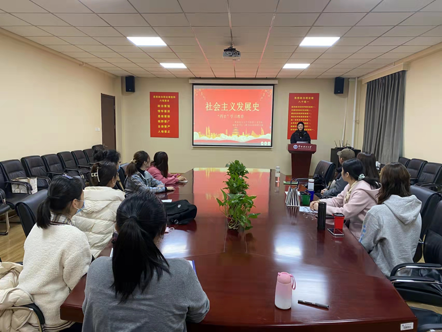 为深化四史学习教育,切实增强理论知识与实践能力,加强同学们对四史的理解,跟换地传承红色精神。20211112日下午四点,雷竞技RAYBET研究生会与研马2158班团支部于教三C220联合开展“学四史之社会主义发展史读书会”主题活动,活动由读书会会长王紫荆主持,研一全体员工参加。