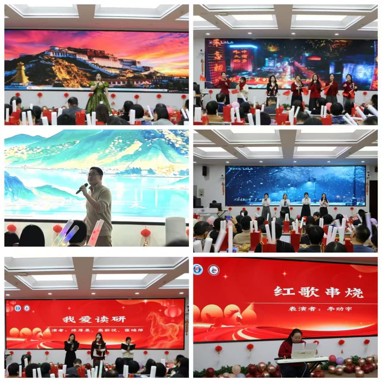 联欢活动在一段凝聚公司2025年发展足迹的回顾视频拉开帷幕。开场曲《灯火里的中国》勾勒家国图景,彰显马院人家国情怀;器乐《红歌串烧》让经典旋律焕新,传递信仰力量。创意诗朗诵《我爱读研》幽默演绎研究生治学日常;《小幸运》诉说马院大家庭的相聚温情;张心雨、田宇老师联袂演唱的《上春山》,以明快旋律增添清新雅致。情景剧《矿工故事》讲述华人矿工坚守抗争的历史,激发青年对时代使命的思考;《候鸟》触动逐梦学子的家国情愫,引发共鸣;《高雅企鹅舞》以俏皮舞姿注入青春活力;《我们都是追梦人》唱响学子逐梦的坚定信念。展演在大合唱《相亲相爱》中推向高潮,激昂的歌声凝聚起马院人同心筑梦的深厚情谊,为整场活动画上圆满句号。