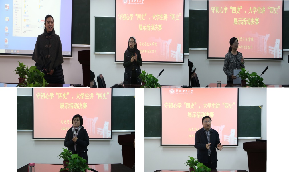 接下来,由评委老师对此次活动进行点评。老师们对大家能够积极参与此次活动表示由衷的赞许,欲讲“四史”,必学“四史”,通过自己的学习,掌握丰富的理论知识,从而去影响、去传播,带动更多的人去学习“四史”。希望各位同学以此次活动为契机,进一步严格要求自己,保持对先进理论学习的持久性和永恒性,无论在当前的学习和今后的工作中,人文情怀都将是属于自己特有精神圣地。