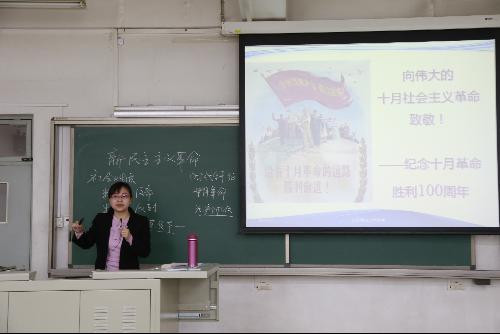 王旭琰老师主讲新民主主义革命理论中的《近代中国社会性质与中国革命的时代特征》,王老师从近代中国社会性质和时代特征两个部分进行分析,最后得出“近代中国社会性质和中国革命的时代特征,是新民主主义革命理论的理论依据”的课堂总结。
