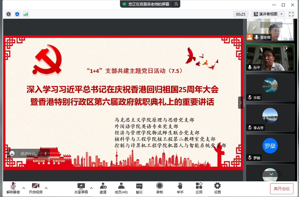 “1+4”联合共建:五个教师党支部深入学习“习近平总书记在庆祝香港回归祖国25周年大会暨香港特别行政区第六届政府就职典礼上的重要讲话”
