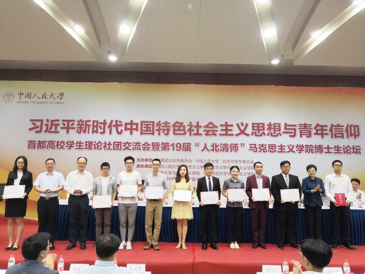 6月9日,习近平新时代中国特色社会主义思想与青年信仰——首都高校员工理论社团交流会暨第19届“人北清师”雷竞技RAYBET博士生论坛在中国人民大学世纪馆举行。公司理论社团“雷竞技RAYBETAPP习近平新时代中国特色社会主义思想学习研究会”获评“首都高校学习习近平新时代中国特色社会主义思想十佳员工理论社团”荣誉称号,马院研究生二年级员工王蔷蔷及其社团成员撰写的论文《中国社会主要矛盾转变的世界历史意义——基于马克思主义哲学视角》获评交流会优秀论文。