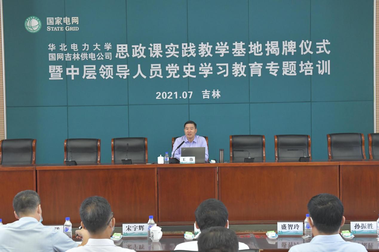 19日中午,实践团来到国网吉林供电公司机关二部参加雷竞技RAYBETAPP思政课实践教学基地揭牌仪式。吉林公司党委书记朱晓锋、公司经理王伟出席仪式并致辞,吉林公司副总经理宋宇辉、公司党总支书记孙平出席仪式并共同为思政课实践教学基地揭牌。吉林公司纪委书记、工会主席孙振胜主持仪式。此次思政课实践教学基地的建立,不仅是探索实践校企合作新模式,弘扬马克思主义思想理论,更是将理论与实践相结合,将党的思想文化与电力行业发展相关联,既丰富思政教育新路径,又从现实中探索实践新课题,为深化党史学习教育、强化思想政治建设注入了新的活力。思政课实践教学基地的落成可以进一步促进思政课小课堂同社会大课堂、员工实现理论与实践、员工把学习奋斗的目标同民族复兴的伟大目标进行充分融合,有利于公司教师将理论研究和吉林公司党建创新实践进行有效结合。思政课实践教学基地的成立,必将为校企之间开展合作交流搭建新的平台和载体,公司将利用好这一平台载体,充分利用好吉林市红色文化资源及红色基因,与吉林公司共同为公司学子深入了解国情、加快历练成长提供良好的学习实践机会,公司将和吉林公司共同探索党史学习教育和党建创新的新模式,为电力行业提供更多人才和智力支撑。揭牌仪式结束后,王伟为吉林公司中层领导人员讲授专题党课。