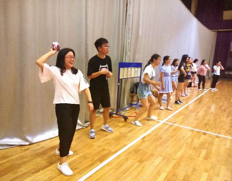第二轮是丢沙包游戏,两组同学形成对抗模式,凝心聚力各自为营,中场淘汰出局的同学们也没有置身事外,积极的在场边为场上的选手呐喊加油。