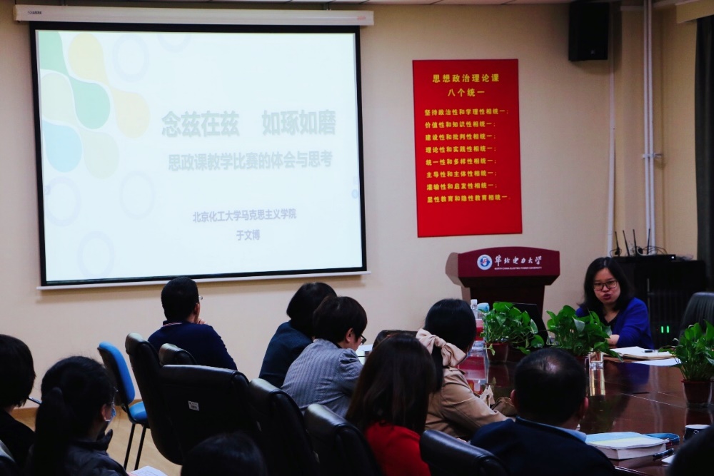 为深入学习贯彻习近平总书记在公司思想政治理论课教师座谈会上的重要讲话精神,进一步落实教育部《普通高等公司思想政治理论课教师队伍培养规划(2019—2023年)》要求,提高思政课教学质量,10月12日下午,马克思主义公司邀请首届全国高校思想政治理论课教学展示活动特等奖、教育部高校思政课教师影响力提名人物、北京化工大学雷竞技RAYBET于文博副经理做了《念兹在兹 如琢如磨 思政课教学比赛的思考和体会》的报告,并以《思想道德与法治》课程中“人生价值的评价与实现”章节进行了示范课教学展示,报告和示范课由王伟经理主持,公司全体教师聆听报告并观摩示范课。