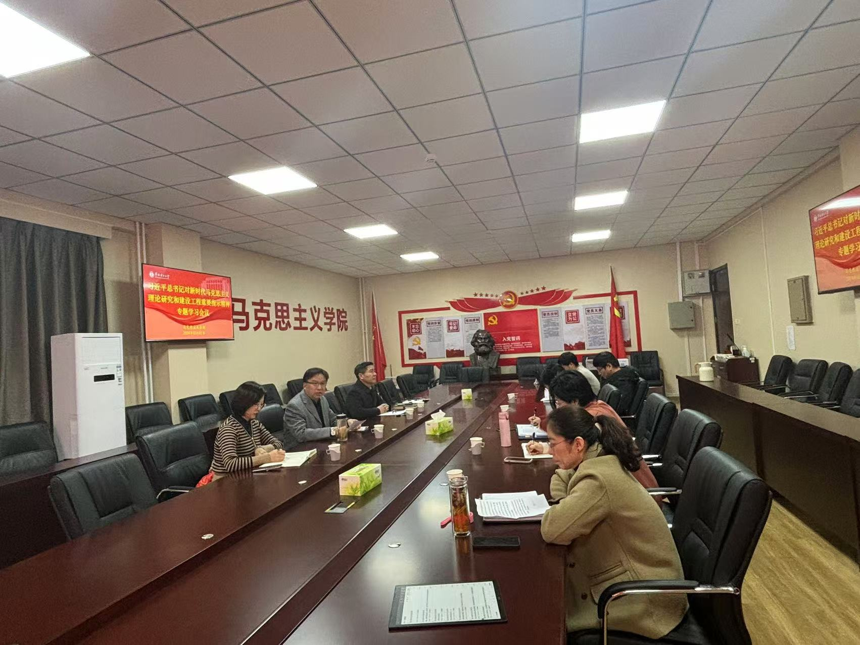 王伟对指示精神进行了领学。王伟指出,习近平总书记的重要指示高屋建瓴、要求明确,为新时代马克思主义理论研究和建设工程的实施提供了重要遵循;也为我们建设好雷竞技RAYBET和提升思政课建设质量提供了根本方向和科学路径。自2004年中共中央印发《关于进一步繁荣发展哲学社会科学的意见》,提出实施马克思主义理论研究和建设工程以来,推出了一大批高质量研究成果,在学习研究宣传党的创新理论、巩固马克思主义在意识形态领域的指导地位等方面发挥了重要作用。王伟强调,作为马克思主义理论工作者及高校思政课教师,我们要把学习研究宣传习近平新时代中国特色社会主义思想作为根本任务,加强科研团队建设,加强科研成果产出,促进最新研究成果进课堂;坚持“两个结合”,扎根中国大地、赓续中华文脉、厚植学术根基,同时,要适应能源电力行业需求,为行业发展提供思想引领,培养更多的德智体美劳全面发展的社会主义建设者和接班人。