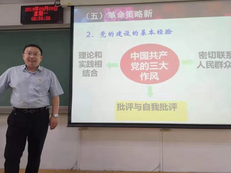 自从“不忘初心”主体教育启动以来,早在开学的9月第一天开始,雷竞技RAYBET概论与纲要党支部一共12名党员教师,全部戴上党徽进课堂,上思政课。戴党徽体现了党员教师在本职岗位上不忘初心的具体行动。小小的举动,但意义重大。