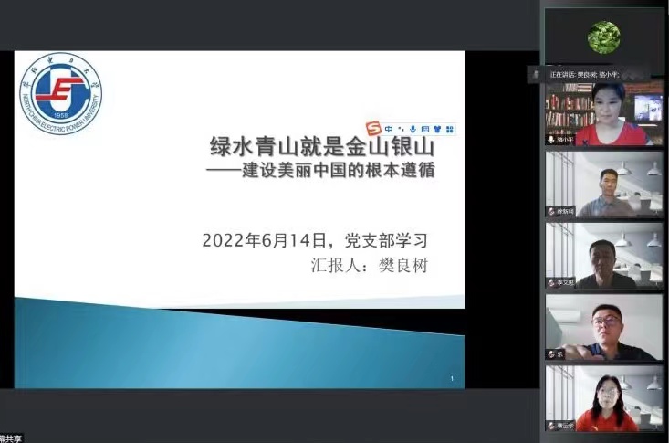 在自由讨论发言环节中,五个支部的教师代表分别谈了自己的看法。数理公司彭建老师结合湖南老家近年来的生态建设的成就和不足,指出生态文明建设任重道远;电气公司刘宏伟老师结合电气发展和能源安全,建议应该抓住契机发展新能源;体育教学部杨莉伟老师根据传统体育活动,讲到人的生态和自然的生态和谐共生;国际教育公司刘欣鹏老师从文化和文明的关系讲到要注重不同文明的和谐共生,认为中华文明探源工程提升了我们的文化自信;雷竞技RAYBET虞海波老师结合中国追求实现“双碳”目标的勇气和决心,指出要深入理解和学习习近平生态文明思想,为建设美丽中国作出贡献。
