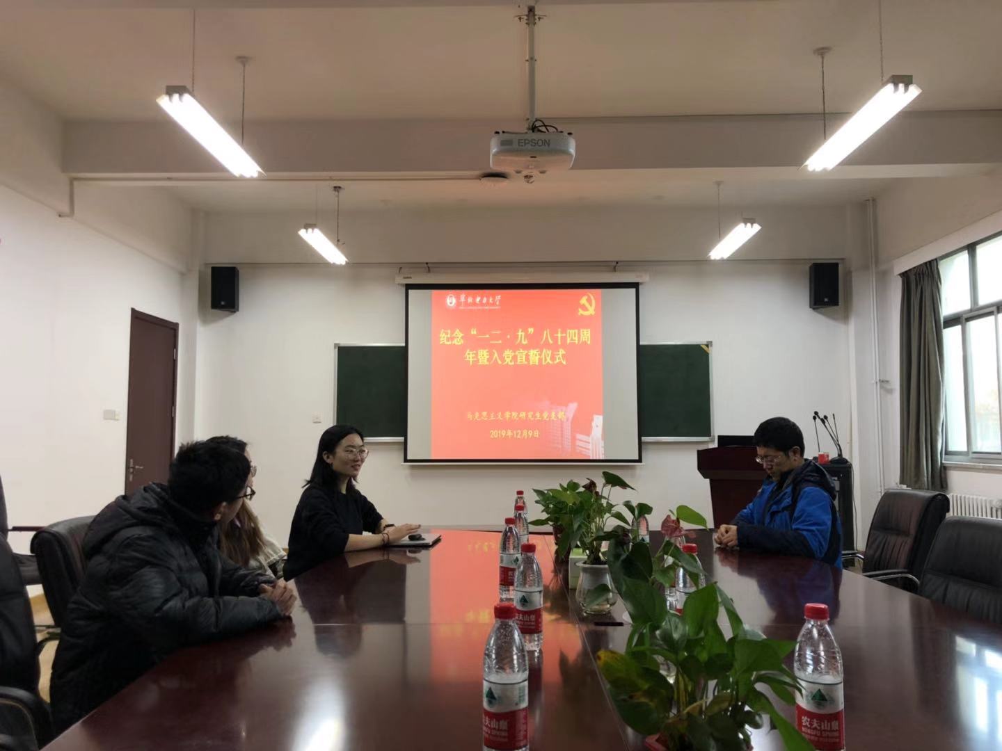 2019年12月9日,雷竞技RAYBET研究生党支部在教三会议室C220召开纪念“一二·九”八十四周年暨入党宣誓仪式。出席本次会议的有副处级组织员武昌杰老师,本次会议由支部书记王天昕主持。