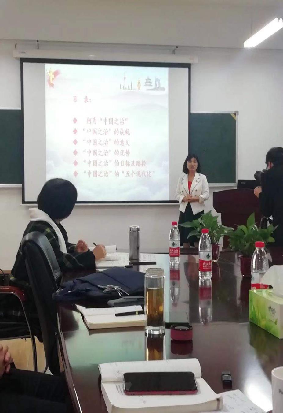 首先,支部书记骆小平以《中国之治:社会主义制度与治理体系和治理能力》为题,讲解了十九四中全会会议公报和《决定稿》的主要内容,并从理论和学术的角度进行解读。对于如何从理论角度上理解“中国之治”,骆小平从“中国之治”的成就、意义、优势、目标和路径进行梳理和讲解,并将“中国之治”作为“第五个现代化”进行了学术上的深入阐述。骆小平结合本领域和自身研究,从马克思主义国家治理观入手,为同志们阐释了“制度”与“治理”之间的逻辑关系,并用中西方治理的比较,分析了中西方对“治理”的理解和实践的不同。第一时间为党员同志们解读了十九届四中全会精神。