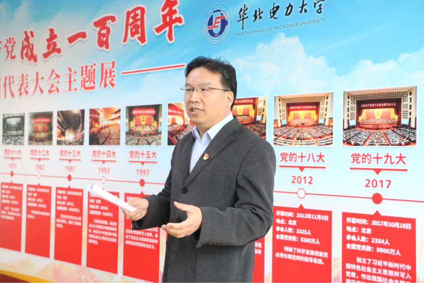 接着,孙平带领员工宣讲团全体讲解员以历次党代会发展为主线,依次对每一块展板进行了讲解培训,既考虑整体框架,又突出重点部分,既有党的历史事件详细讲述,更有马克思主义的立场、观点、方法的体现。孙平强调,历史是最好的教科书,中国共产党在马克思主义理论的指导下,牢记初心和使命,坚持人民立场和为人民服务的宗旨,带领中华民族克服了一个又一个困难,实现了从站起来到富起来,再到强起来的历史飞跃。站在建党百年之际回望历史,我们能深切感受到没有共产党就没有新中国,只有中国共产党才能救中国,才能发展中国。全体同学要不断增强“四个意识”、坚定“四个自信”、自觉做到“两个维护”,明理增信、崇德力行,为实现中华民族伟大复兴的中国梦而不懈奋斗!