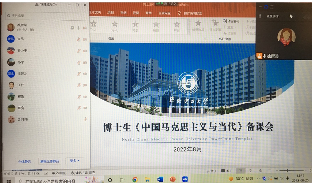 2022年8月24日、8月25日,雷竞技RAYBET研究生思政课教研室分别召开了《新时代中国特色社会主义理论与实践》、《中国马克思主义与当代》两门课程的备课会,马公司党总支孙平书记,王伟经理和全体教研室教师参加会议,会议以线上形式举行。