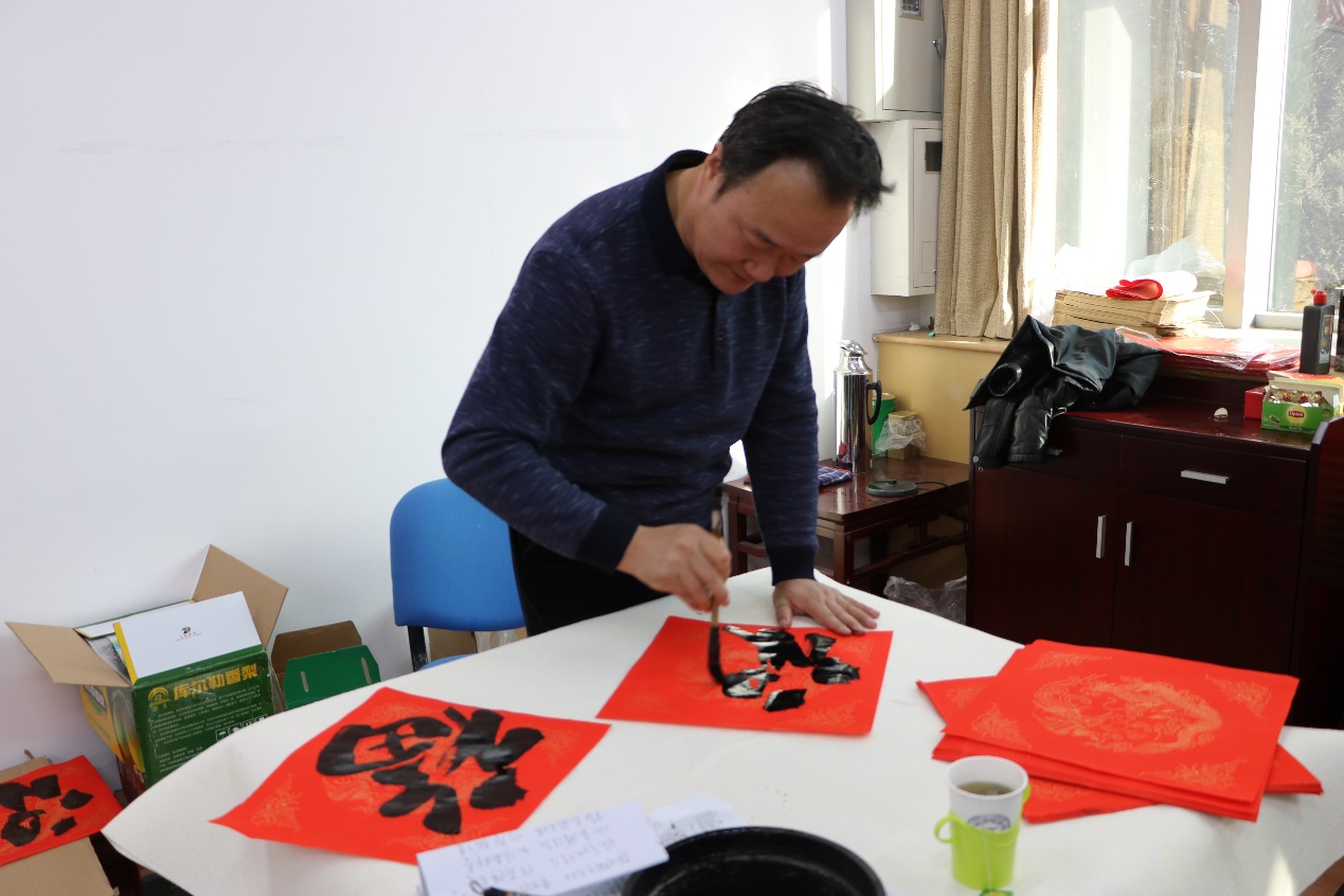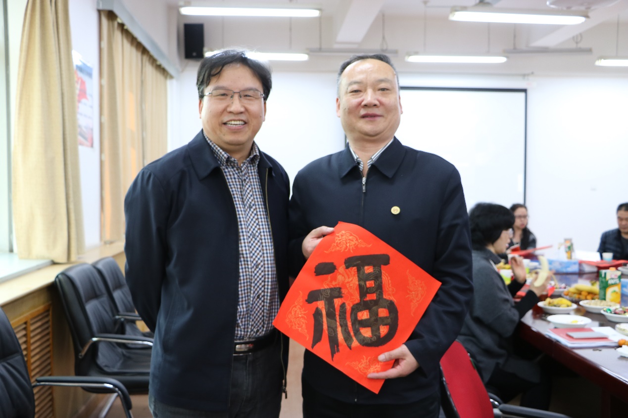 经理孙平与公司党总支书记蔡利民为全体师生赠福。