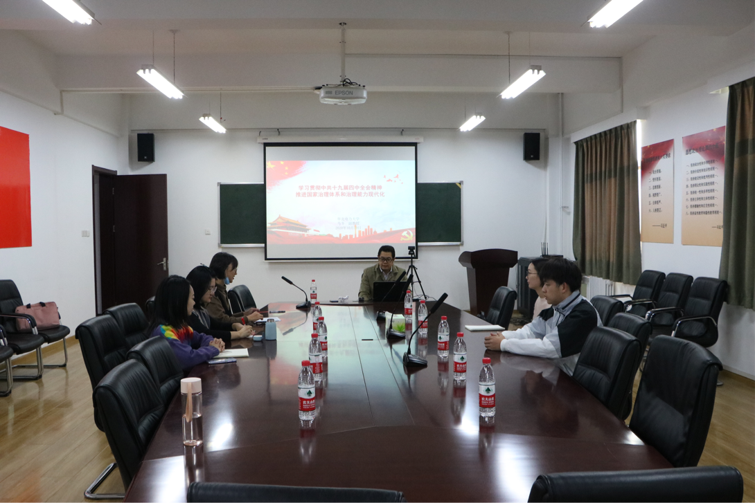 10月19日上午,雷竞技RAYBET在教三C220开展入党积极分子党课培训活动。特别邀请到外国语公司党委副书记马冬老师作题为《学习贯彻中共十九届四中全会精神,推进国家治理体系和治理能力现代化》的讲座。本次活动由院研究生党支部书记刘彩霞主持,全体入党积极分子参加。