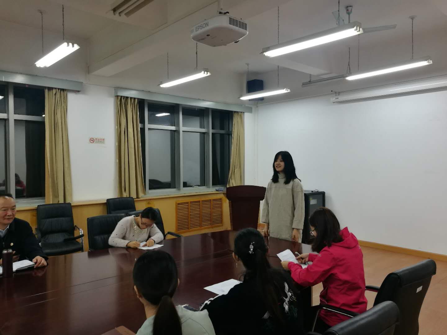 首先由发展对象候选人对自身表现情况进行简单汇报,其中千金因在台湾交流,委托曾秋红代为陈述。