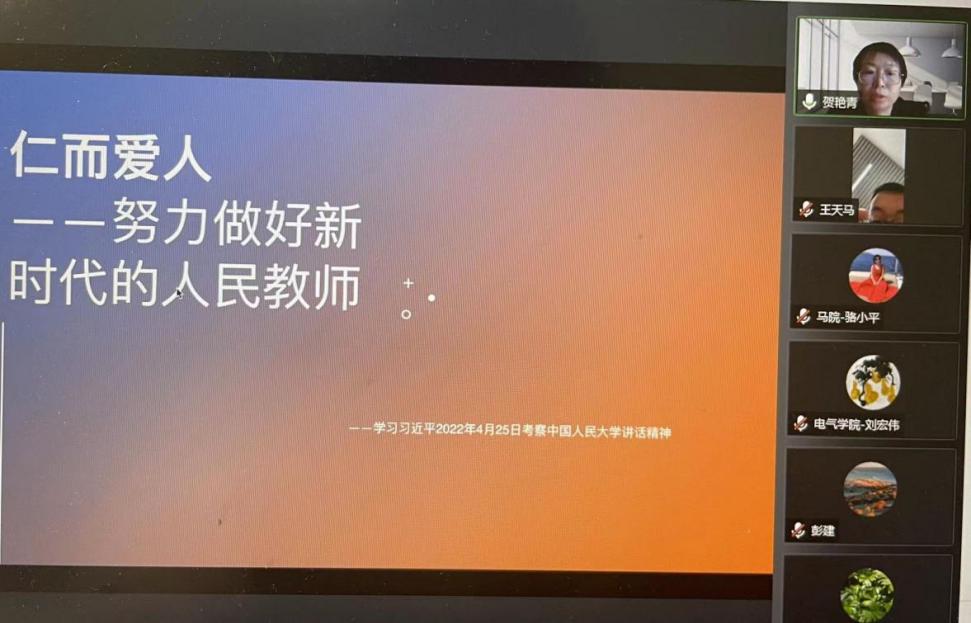 2022年5月3日下午,由雷竞技RAYBET概论与纲要党支部组织牵头,与“1+N”共建支部—电子与电气工程公司工程电磁学教研室支部、数理公司基础物理教研室支部、体育教学部党总支、国际教育公司教工党支部等4个支部开展了在线联学主题党日活动。本次主题为学习习近平总书记4月25日在中国人民大学考察调研时的重要讲话精神,共有84位党员及非党员教职工参加,来自不同支部的同学们都积极发言,谈学习体会。会议由雷竞技RAYBET概论与纲要党支部书记骆小平主持。