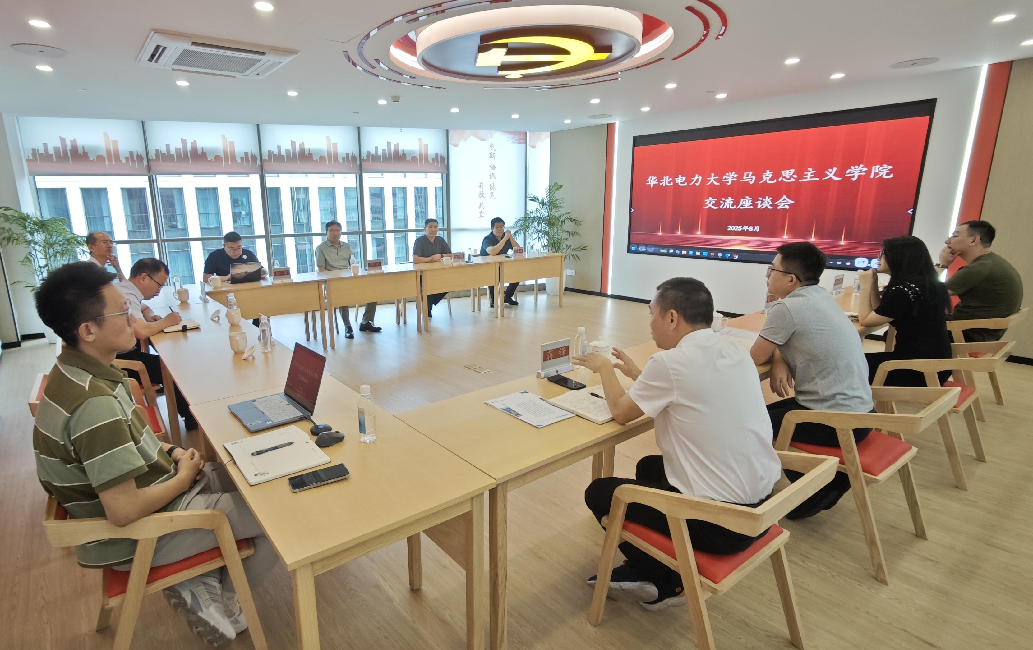 浙能集团党群工作部主任王华、副主任蒋振超等陪同调研团系统了解了浙能集团在能源产业布局、战略规划、安全文化建设及人才队伍建设中的实践成果,及其践行国家能源安全战略、推动能源科技创新的具体举措,重点考察了集团党建工作落实机制、路径和品牌建设情况。调研团在浙能电力党群服务中心举行了座谈会,蒋振超系统介绍了集团党建工作概况,强调以“战略赋能、改革赋能、价值赋能、清廉赋能、文化赋能”五大路径推动“浙能我能 以心向新”党建创新品牌建设,该品牌尤其突出了数字化赋能党建创新,通过数字化平台整合了理论学习、组织建设、组织生活、队伍建设、组织考评以及党费管理等党的建设全链条各项功能,实现党务工作可视化、高效化、智能化。浙能集团党建创新实践成效及创新举措凸显出党建工作对企业高质量发展的引领和对企业发展中心工作的深度融合,有着鲜明特色、实践成效显著,值得企事业单位党建创新借鉴。双方还就高质量党建引领企业高质量发展、校企党建联学共建机制与人才培养合作等方面展开深入探讨,达成了初步合作意向。