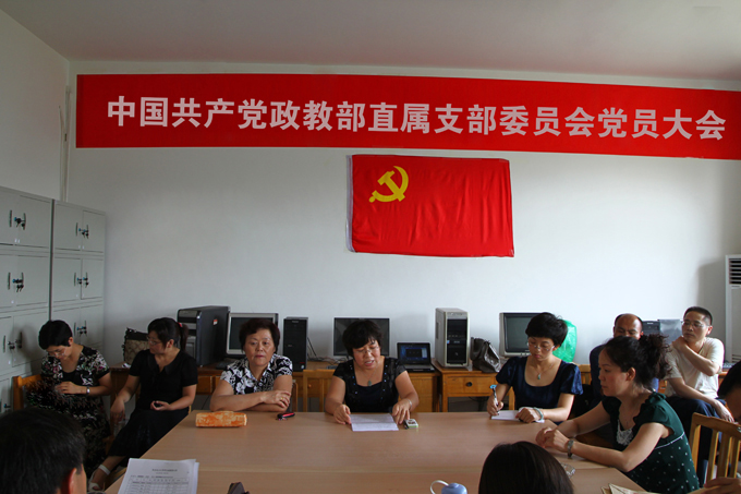 中共政教部新一届直属支部委员会于2010年6月24日在教八B座406召开了第一次全体委员会议,经无记名投票选举产生政教部直属党支部书记,换届选举圆满结束。
