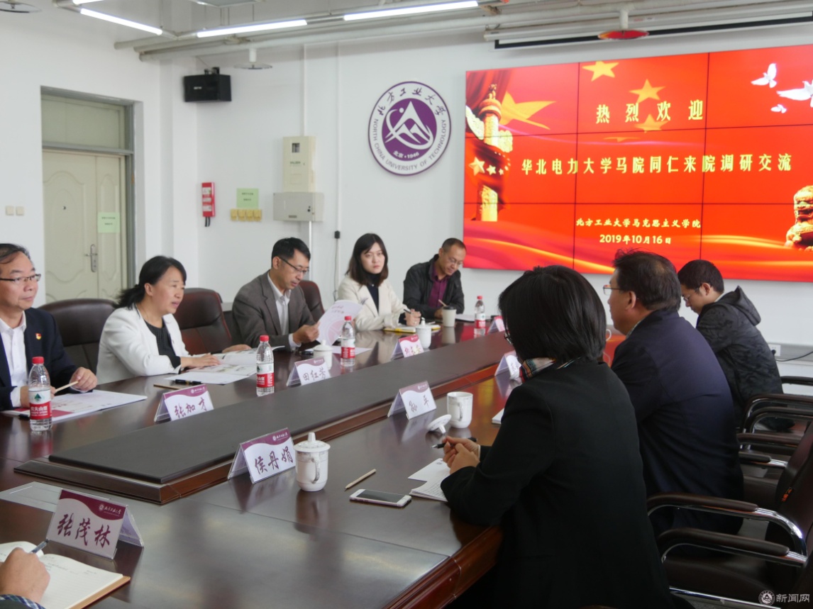 蔡利民说,非常感谢北方工业大学马院同仁提供这次交流的机会。两校都为特色鲜明的行业性工科高校,两校马院发展历程也较类似。目前,两校人员规模相当,在队伍建设、团队建设、人才培养、思想政治理论课建设方面都面临着较为共性的问题,两院在公司建设方面取得的一些经验值得相互借鉴。以“不忘初心、牢记使命”主题教育为契机,两院将互相学习好的做法和经验,深入挖掘发展潜力,共同开创两院合作新篇章。