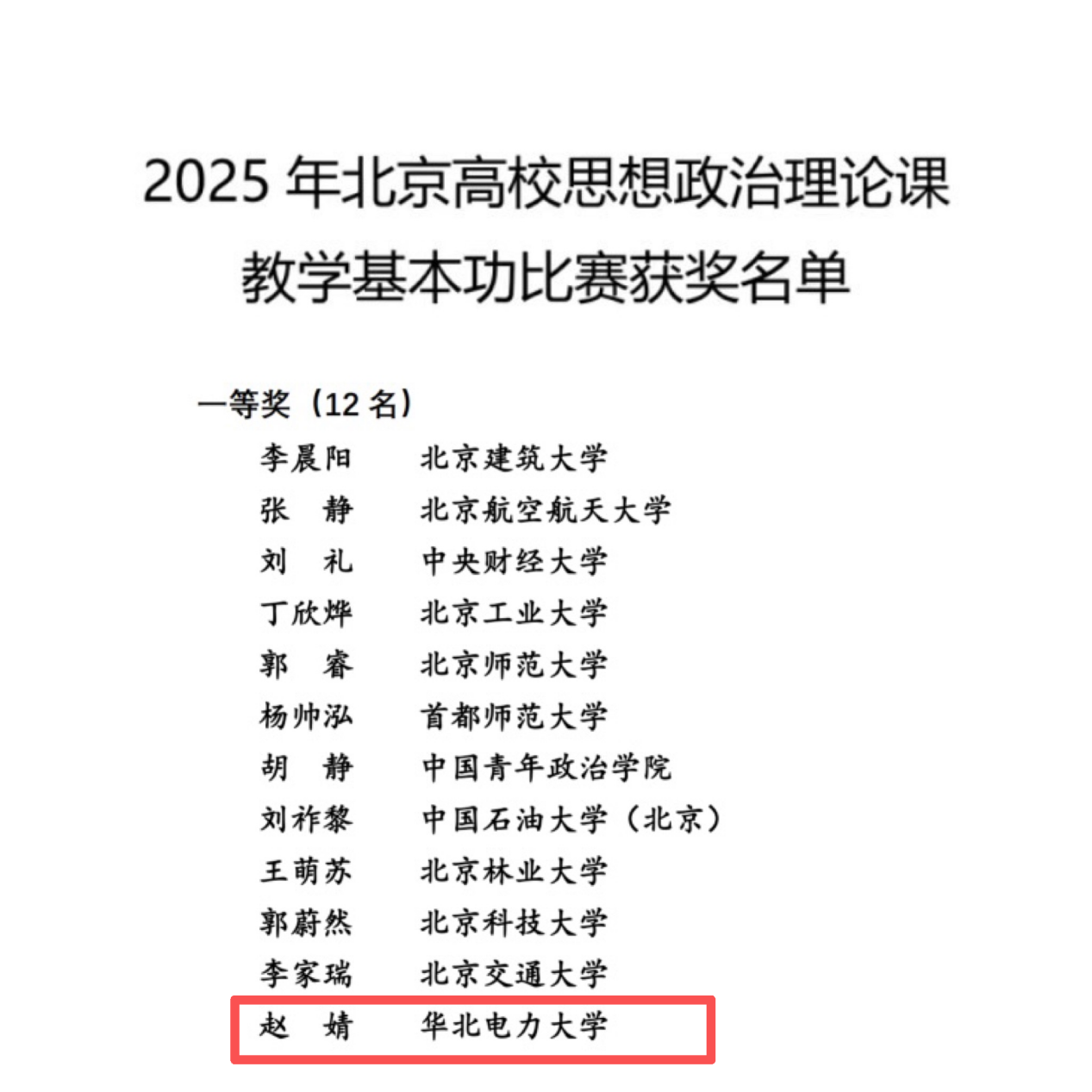 为进一步深入学习贯彻习近平总书记关于思政课建设的系列重要论述,纵深推进北京高校思政课建设内涵式发展,2025年10-11月,中共北京市委教育工作委员会举办2025年北京高校思想政治理论课教学基本功比赛,公司雷竞技RAYBET青年教师赵婧荣获一等奖。